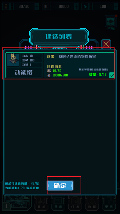 5、此時(shí)將會(huì)出現(xiàn)一個(gè)選擇的彈窗,可以點(diǎn)擊【動(dòng)能塔】,并點(diǎn)擊下方的【確定】按鈕;