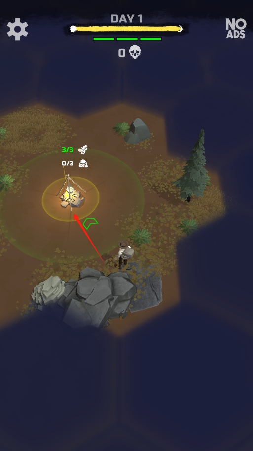 2、收集到的樹木和石頭會(huì)會(huì)有攜帶的數(shù)量限制,所以需要那好材料前往篝火處自動(dòng)收集;