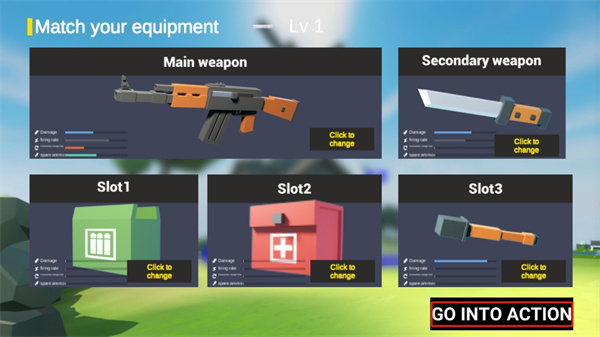 戰(zhàn)場(chǎng)上的所有軍事元素都被設(shè)計(jì)了出來(lái),各種射擊激戰(zhàn),樂(lè)高元素設(shè)計(jì)出來(lái)的武器;