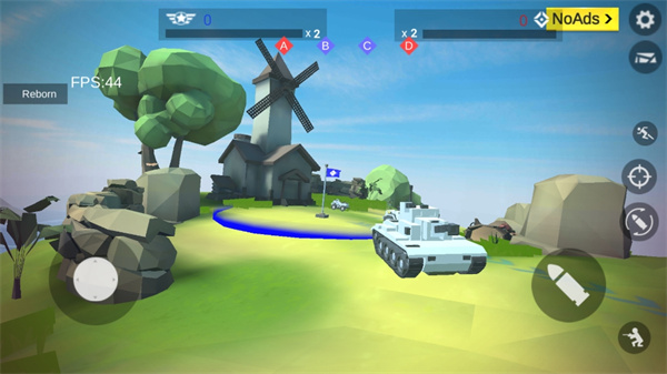 1、右下角的點(diǎn)擊進(jìn)入戰(zhàn)場(chǎng)之內(nèi),在漫山凹凸不平的綠色山地之上穿梭,靈活的游走在各個(gè)山地之間;
