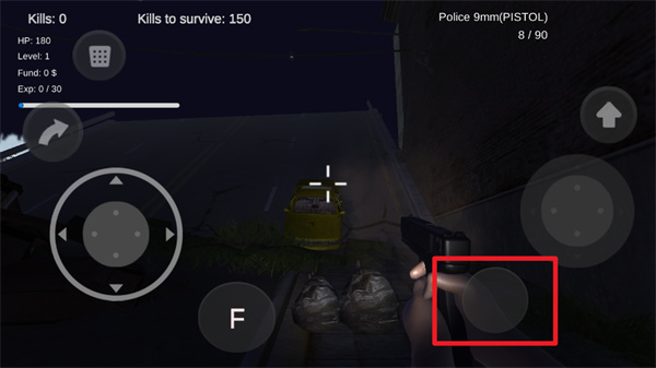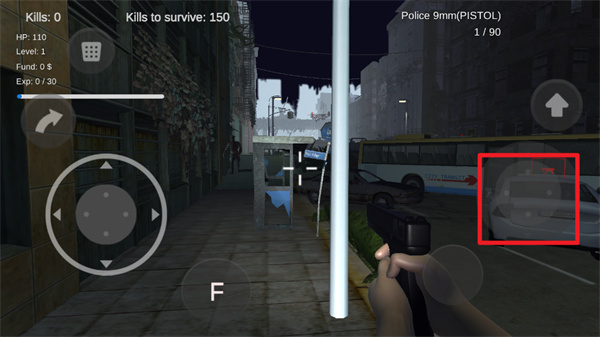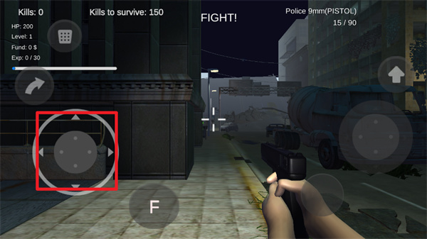 4、移動過程中可以點擊屏幕下方紅色框框內(nèi)的按鈕來進行目標的射擊;