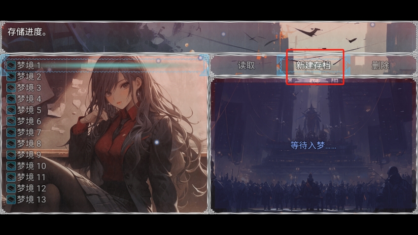 1、第一次游玩該游戲的玩家們需要新建一個(gè)存檔,新建存檔后可以直接進(jìn)入夢(mèng)境;