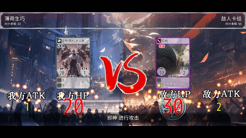 4、接著我們就可以看到利用卡牌的作戰(zhàn)方式,與對(duì)方開(kāi)啟攻擊對(duì)戰(zhàn),注意雙方的血量值和攻擊值哦。