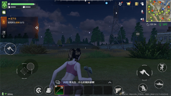 3、故事將在一個(gè)黑夜之中開展,點(diǎn)擊指示之下的裝備,漫天的亮點(diǎn)星星荒島之下探索廣闊的前方,之后在不斷的探索之下逐漸變的更加具有實(shí)力,帶來(lái)更多的物資儲(chǔ)備;