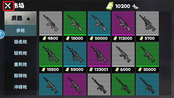 5、隨后可以點(diǎn)擊屏幕左上角的叉號(hào)按鈕,以進(jìn)行市場(chǎng)界面的關(guān)閉,正式的進(jìn)入到戰(zhàn)場(chǎng)之中去;