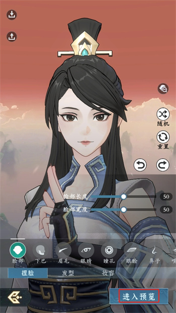 4、在五官、發(fā)型、妝造之間捏造出自己的人物形象,【進(jìn)入預(yù)覽】與這個(gè)獨(dú)特的修仙者開創(chuàng)獨(dú)特的修仙旅;