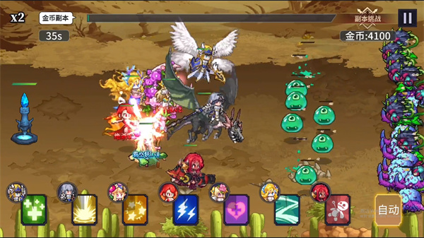 2、將危害國家的敵人擊敗,不斷點擊各個女武神的使用技能進(jìn)行應(yīng)對之舉,或者可以點擊自動戰(zhàn)斗,實現(xiàn)輕松掛機的快樂;