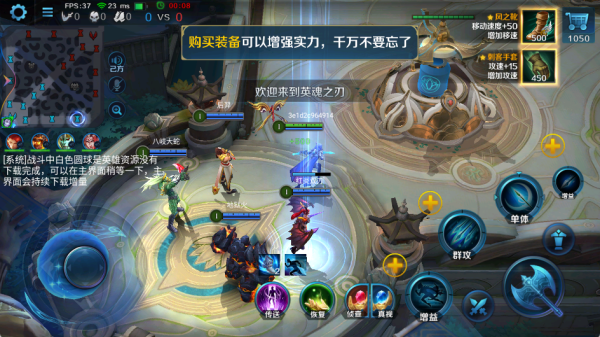 7、最后等待進(jìn)入游戲即可開(kāi)啟對(duì)局,在開(kāi)局記得購(gòu)買裝備,通過(guò)擊敗英雄和小怪的方式可以獲得金幣,使用金幣購(gòu)買裝備不斷提升自己的實(shí)力。