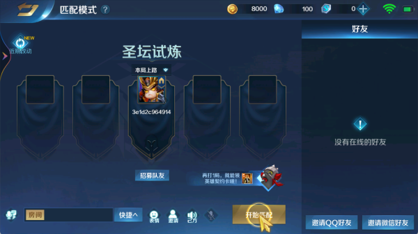4、選擇完成后進(jìn)入匹配房間中,在匹配房間的位置點(diǎn)擊【開(kāi)始匹配】選項(xiàng)進(jìn)行匹配;