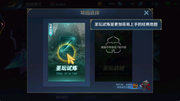 3、在地圖選擇界面點(diǎn)擊【圣壇試煉】玩法,圣壇試煉是更加容易上手操作的經(jīng)典地圖;