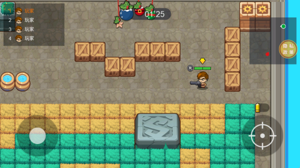 游戲的操作比較簡單,左側(cè)的輪盤操控角色的移動,右側(cè)的攻擊按鍵發(fā)射子彈,將敵人淘汰。