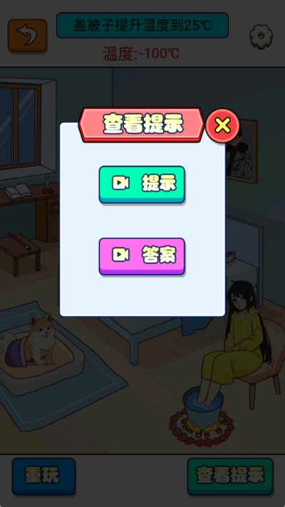4、進入關(guān)卡后,在界面上方會有關(guān)卡通關(guān)的要求,這一關(guān)的要求是,蓋被子提升溫度到25度;