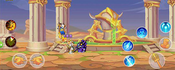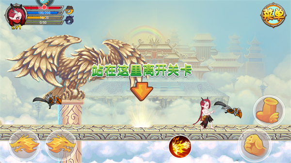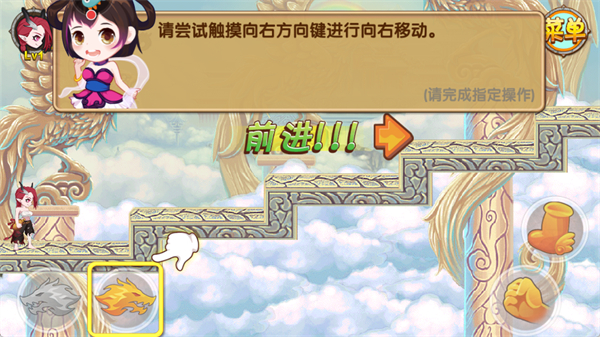 5、進(jìn)入游戲副本后,點(diǎn)擊左側(cè)的按鈕可以控制角色左右移動(dòng),右側(cè)則是跳躍和攻擊按鍵,遇到boss的時(shí)候可以釋放技能對(duì)其造成大量傷害;
