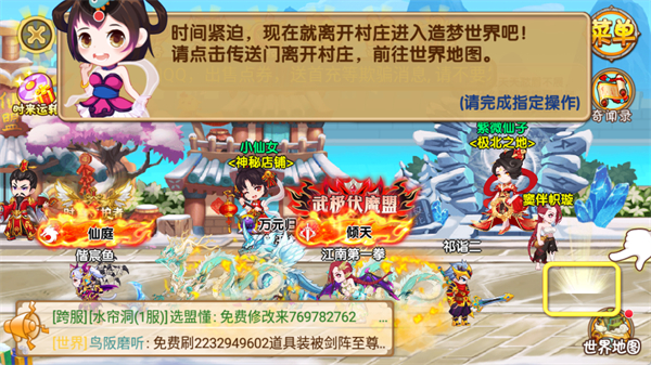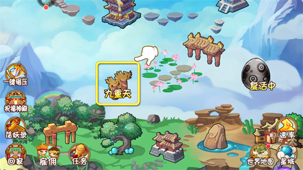 4、在世界地圖的位置點(diǎn)擊九重天副本開(kāi)啟冒險(xiǎn)挑戰(zhàn),通過(guò)挑戰(zhàn)的方式可以獲得豐厚的游戲獎(jiǎng)勵(lì)和道具等;