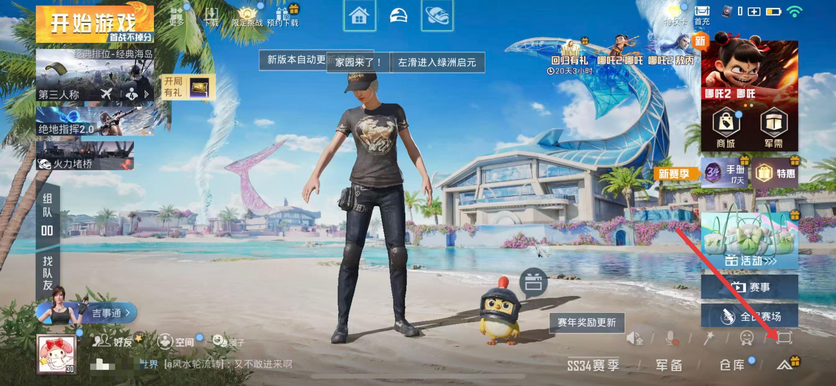 1、在游戲主界面,點擊右下角的展開按鈕,展開隱藏的功能菜單。