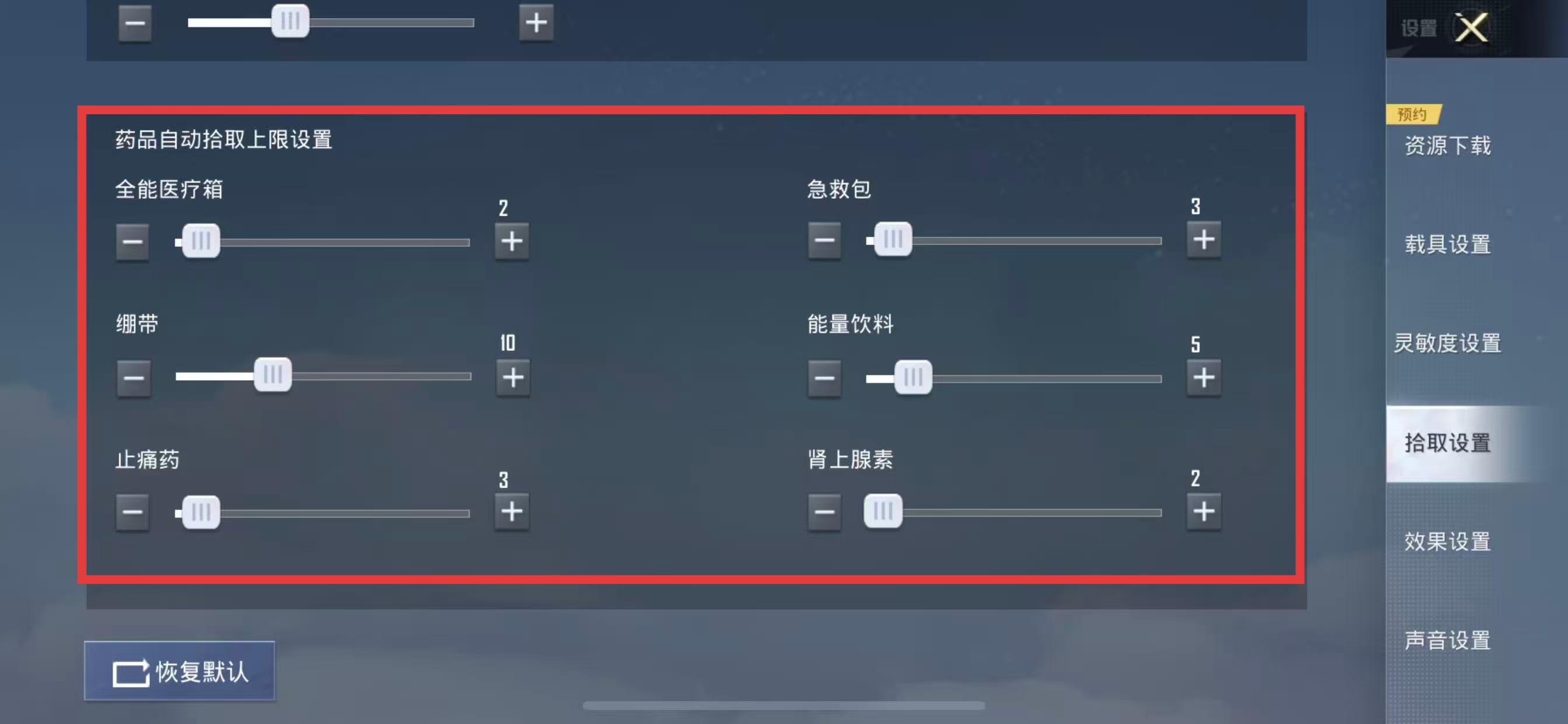 4、設置藥品的拾取數(shù)量,通過滑動調節(jié)條或點擊加減按鈕。