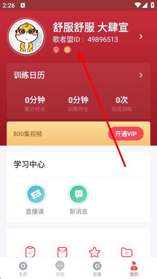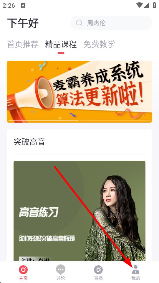1、打開(kāi)歌者盟學(xué)唱歌APP,點(diǎn)擊底部導(dǎo)航欄最右側(cè)的我的選項(xiàng)。