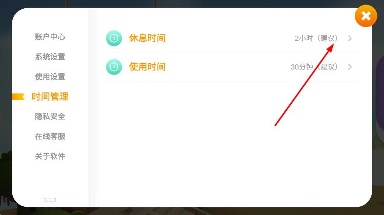 3、在設置里找到時間管理頁面,點擊休息時間選項。