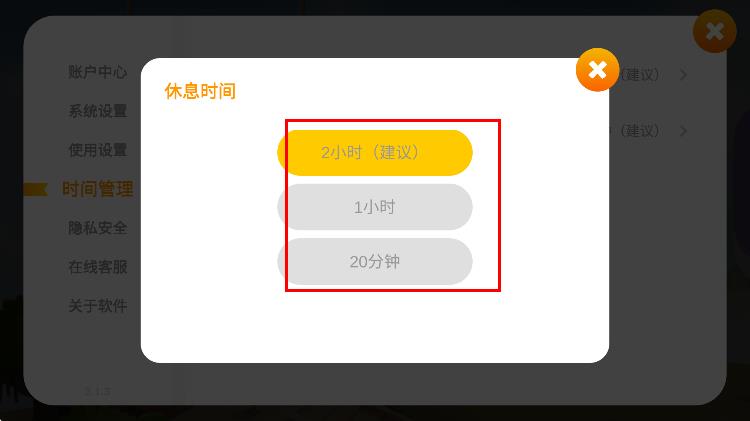 4、在彈窗中選擇合適的休息時長,即可完成設置。