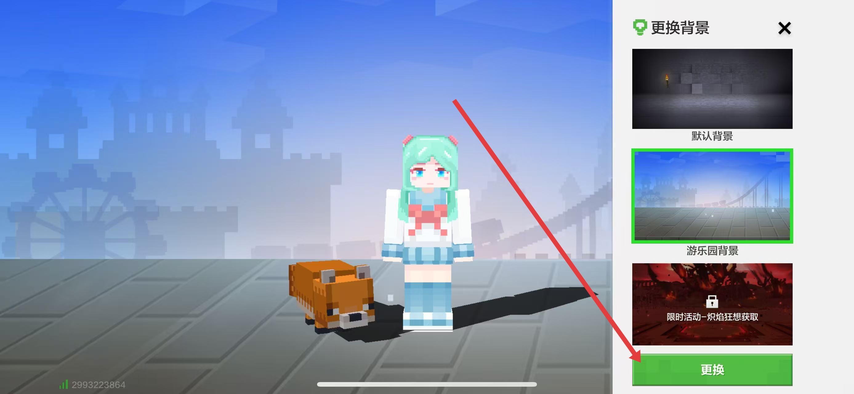 3、選定背景如游樂園背景后,點(diǎn)擊下方綠色更換按鈕,即可應(yīng)用新背景,更新主界面顯示。