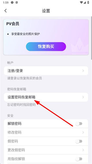 2、在設置頁面中,找到并點擊設置密碼恢復郵箱選項。