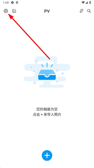 1、打開PV私密相冊管家,在相冊界面點擊左上角的設置圖標,進入設置頁面。