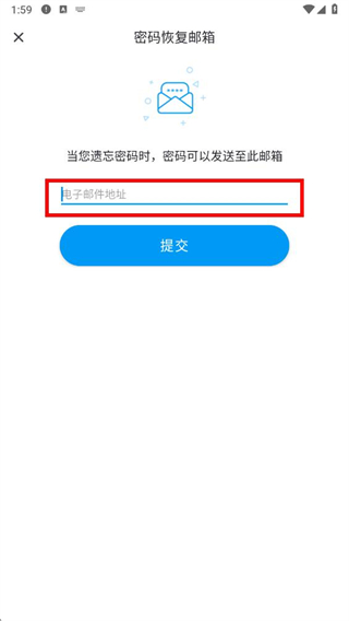 4、填寫好郵箱地址后,點擊提交按鈕,可通過該郵箱接收重置密碼相關信息。