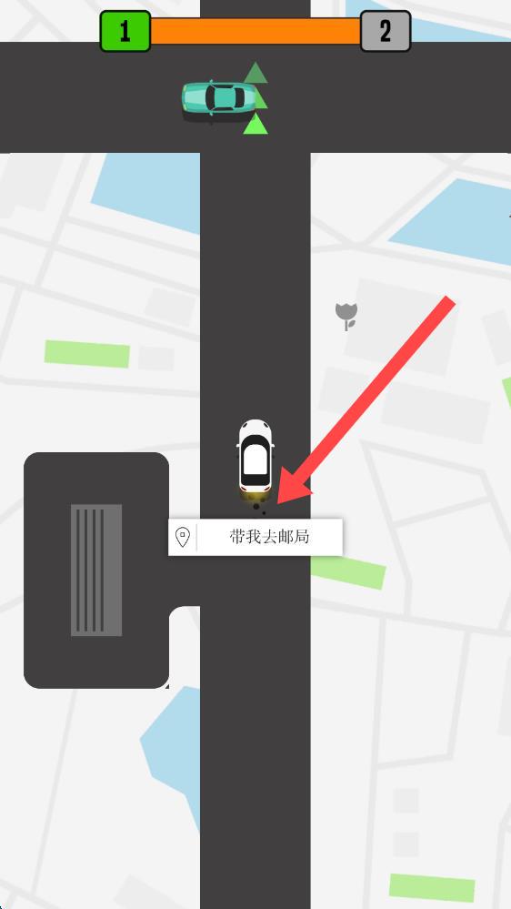 2、第一關(guān)的游戲目標(biāo)是帶我到郵局,玩家滑動(dòng)屏幕控制車輛運(yùn)行,根據(jù)綠色箭頭的方向前往目的地。