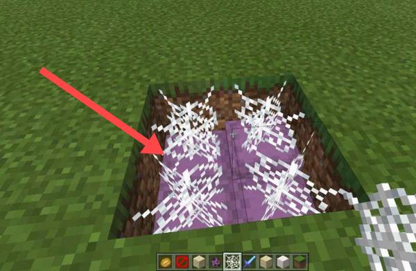 2、制作沙子陷阱需先挖2格深坑,在坑底擺放潛影貝,其上覆蓋蜘蛛網(wǎng)。