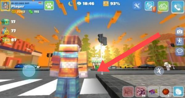 3、展示了一個(gè)開放世界場景,畫面中有一個(gè)背對鏡頭的像素風(fēng)格角色站在街道上,允許玩家自由探索、互動(dòng)。