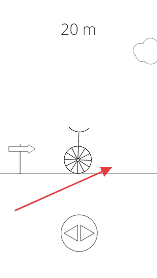 3、進入游戲后,操控獨輪車角色前進,注意屏幕上方顯示的距離(如【20m】),順利通過關(guān)卡。