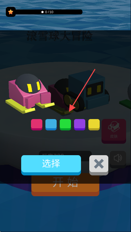 1、進(jìn)入游戲界面后,點(diǎn)擊【開(kāi)始】按鈕開(kāi)啟【滾雪球大冒險(xiǎn)】游戲。