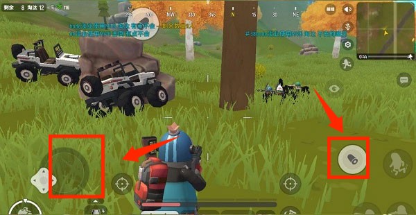 3、拾取好資源后,可以找人打架,左下角為移動(dòng)按鈕,右下角為開火按鈕。