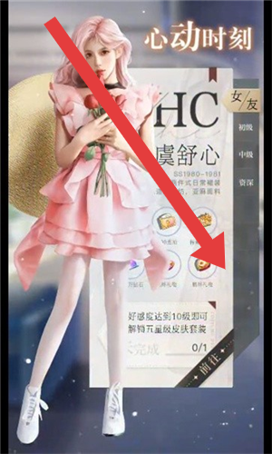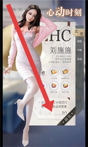 1、進(jìn)入游戲界面后,在【心動(dòng)時(shí)刻】系統(tǒng)(如劉施施角色界面,第一張圖),點(diǎn)擊箭頭指向的【前往】按鈕。
