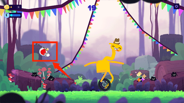 2、在冒險(xiǎn)途中,利用帽子戲法為森林小動(dòng)物表演,以此賺取金錢,金錢可用于解鎖新道具和皮膚,提升長頸鹿能力。