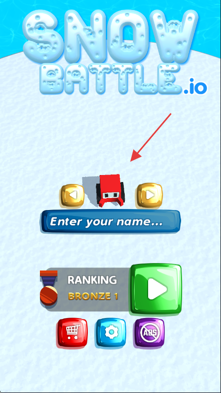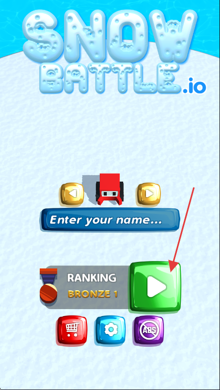 1、在【SNOW BATTLE.io】主界面,點擊箭頭指的位置開始游戲。
