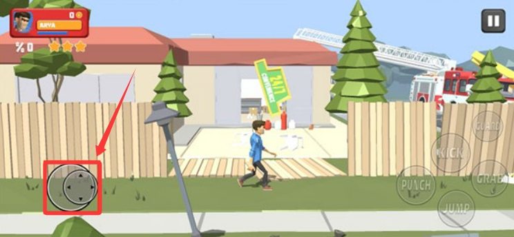 1、進(jìn)入游戲場(chǎng)景中,可以通過(guò)滑動(dòng)左下方的方向按鈕控制角色移動(dòng)。