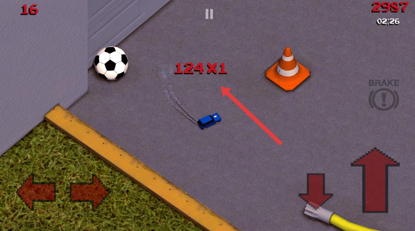 3、游戲中操控車輛,留意畫面中的分?jǐn)?shù)(如【124X1】),在規(guī)定時(shí)間內(nèi)獲取更高分?jǐn)?shù)。