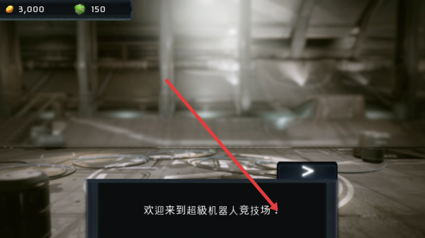 2、在歡迎界面,閱讀【歡迎來(lái)到超級(jí)機(jī)器人競(jìng)技場(chǎng)】文字提示,熟悉游戲場(chǎng)景,為后續(xù)操作做準(zhǔn)備。