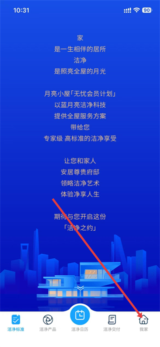 1、打開(kāi)月亮小屋app,點(diǎn)擊底部導(dǎo)航欄我家選項(xiàng)。