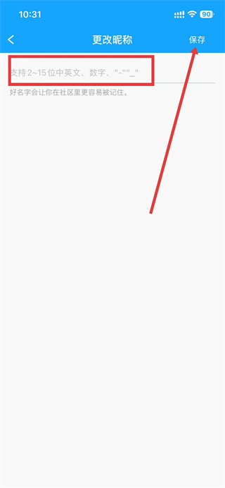 4、輸入新昵稱(chēng),點(diǎn)擊保存,即可完成昵稱(chēng)修改。