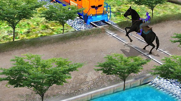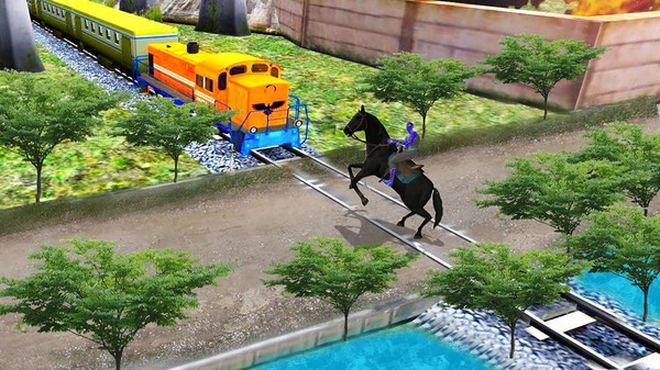 3、再次遇到鐵路時(shí),集中注意力,及時(shí)操控馬匹避開(kāi)【火車】,確保騎行安全并繼續(xù)前進(jìn)。
