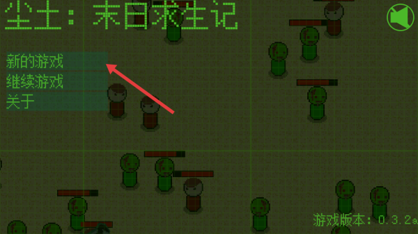 1、進(jìn)入游戲界面看到【塵土:末日求生記】,點(diǎn)擊【新的游戲】選項(xiàng)開啟新游戲征程。