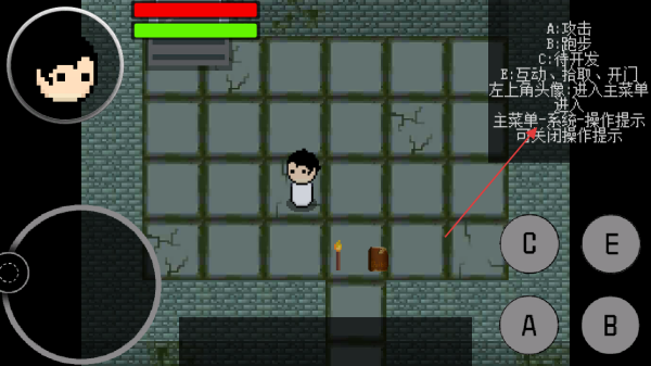 3、熟悉屏幕右側(cè)【A:攻擊】【B:跑步】等操作按鍵功能,左上角頭像可進(jìn)入主菜單,必要時(shí)可關(guān)閉操作提示。