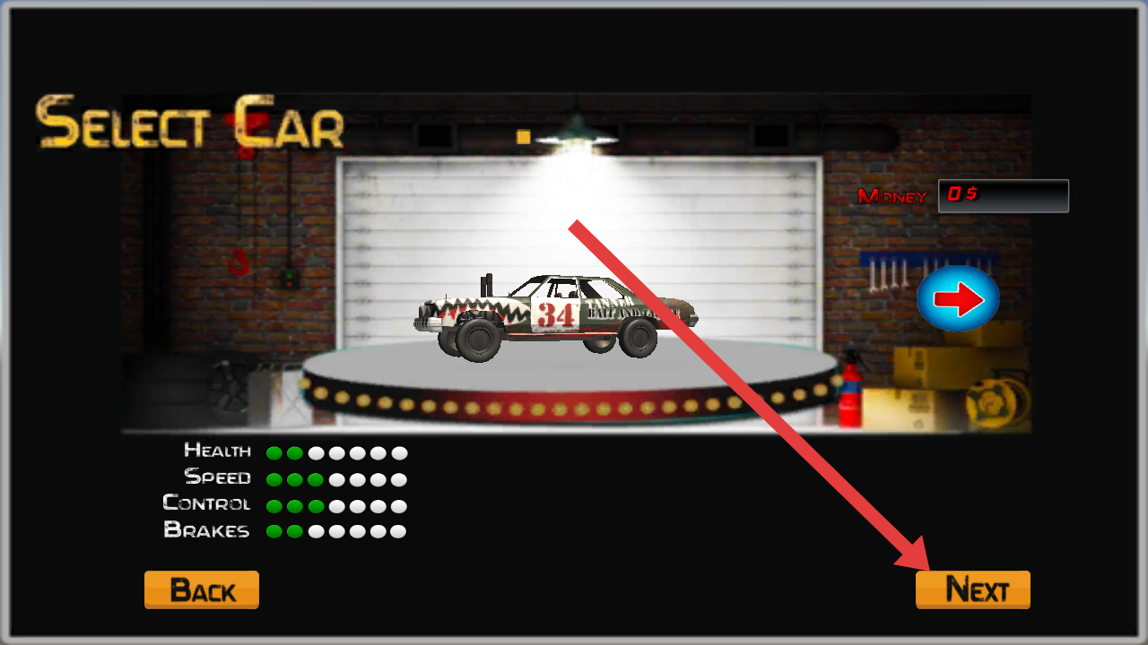 2、在選車界面查看車輛屬性(Health、Speed等),點(diǎn)擊右下角橙色【Next】按鈕,確認(rèn)選擇并進(jìn)入下一個(gè)環(huán)節(jié)。