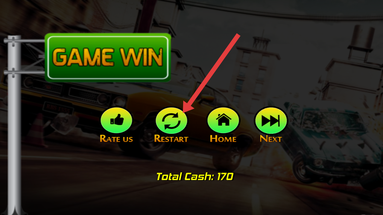 3、游戲勝利后,點(diǎn)擊【Restart】按鈕(箭頭指向),重新開始游戲,再次挑戰(zhàn)關(guān)卡,積累更多游戲經(jīng)驗(yàn)。