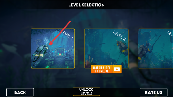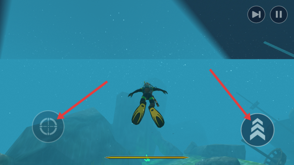 3、進入游戲后,通過指向的虛擬按鍵操控潛水員移動完成關(guān)卡任務(wù)。