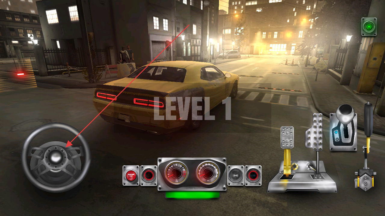 3、在駕駛場景,通過方向盤、踏板等操控賽車,在城市道路行駛,完成關(guān)卡任務(wù)。