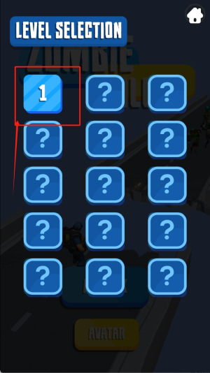1、進(jìn)入游戲后點(diǎn)擊LEVEL SELECTION選擇關(guān)卡,紅框標(biāo)注的數(shù)字1為初始關(guān)卡,點(diǎn)擊開始第一關(guān)挑戰(zhàn)。