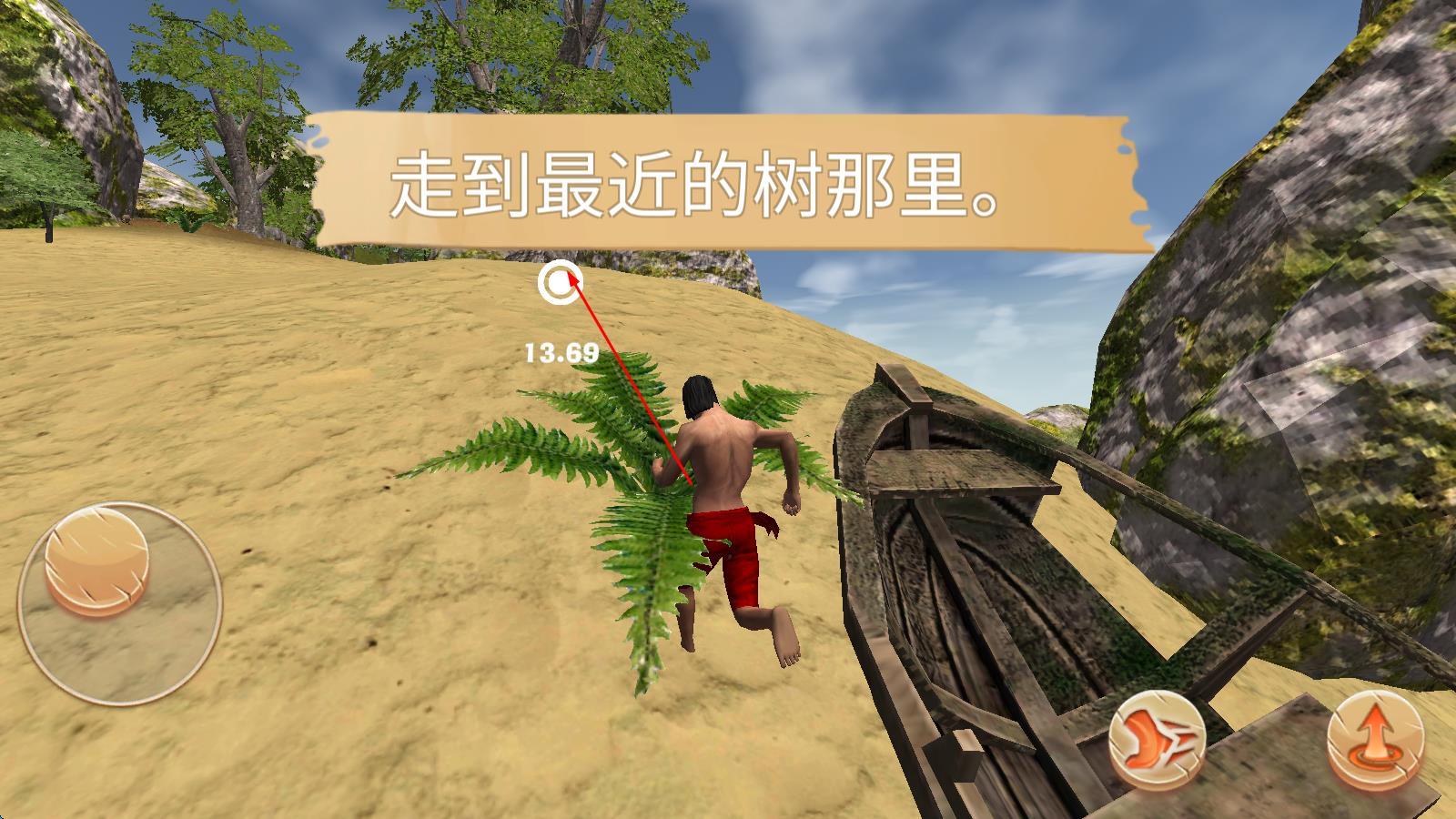 1、初登孤島,優(yōu)先收集石頭、木材等基礎(chǔ)資源,利用“即時工藝系統(tǒng)”制作石斧與長矛,砍伐棕櫚樹獲取樹葉搭建臨時庇護所,夜晚點燃篝火驅(qū)趕野獸。